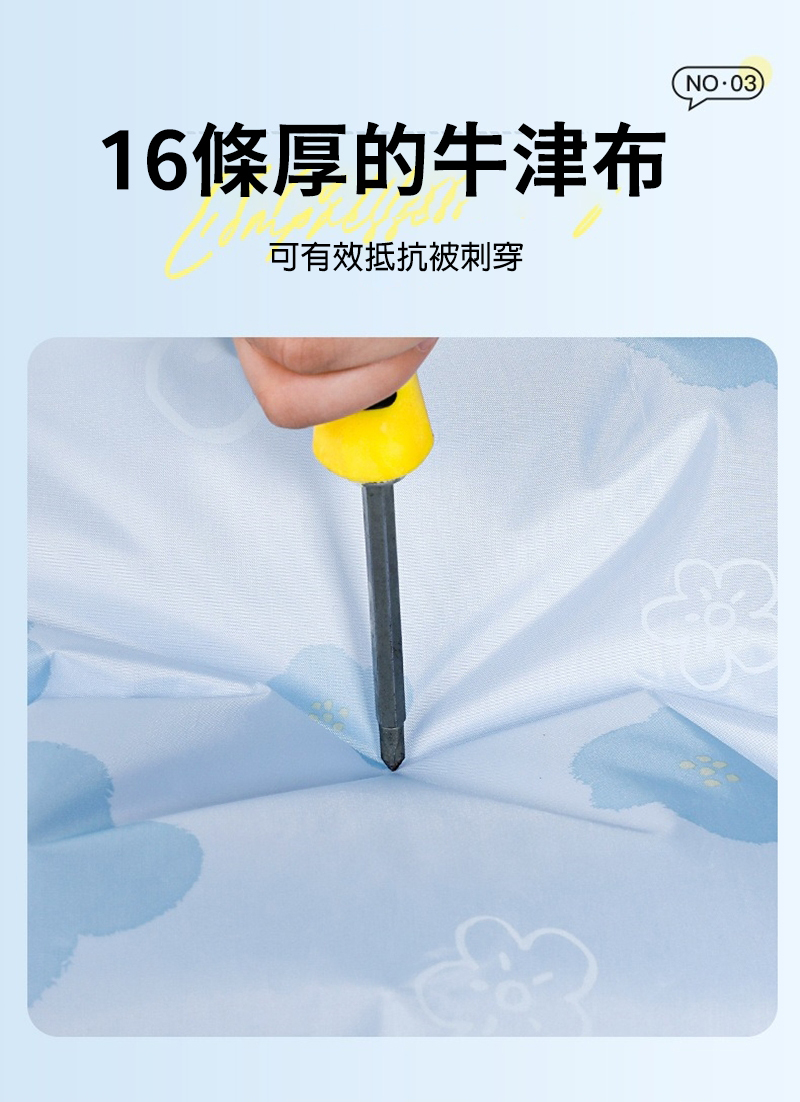 16條厚的牛津布可有效抵抗被刺穿
