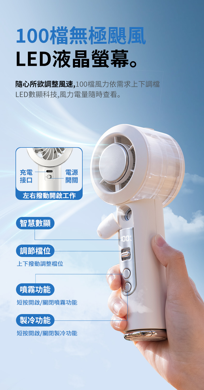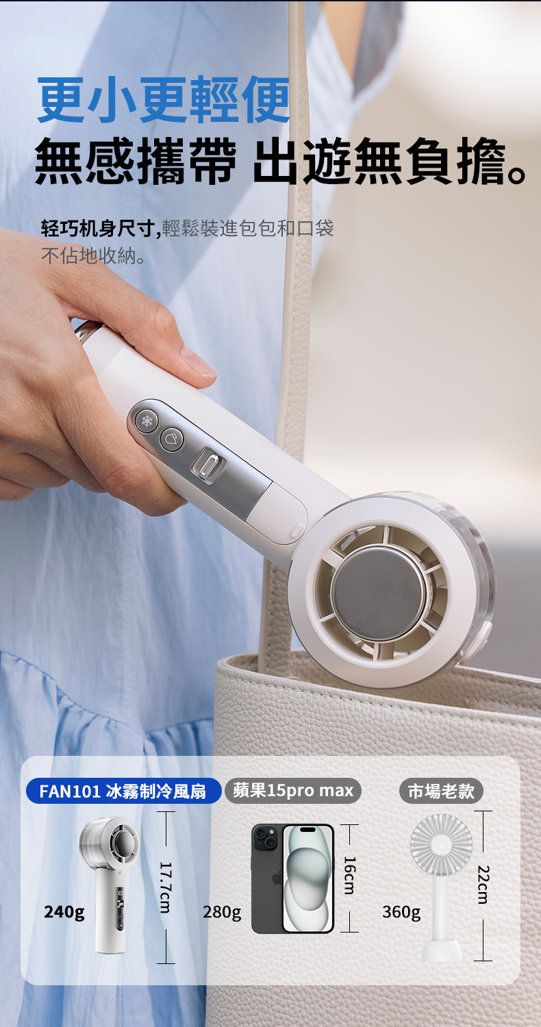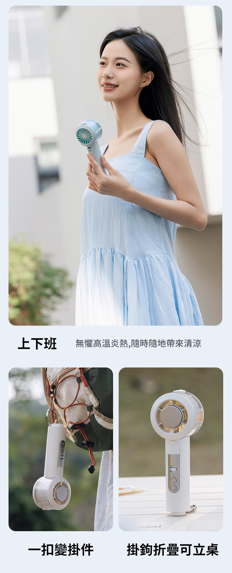 比手機還輕!具備隱藏式掛鉤,一扣即變「桌面立扇」或「隨身掛件」,出遊無負擔。